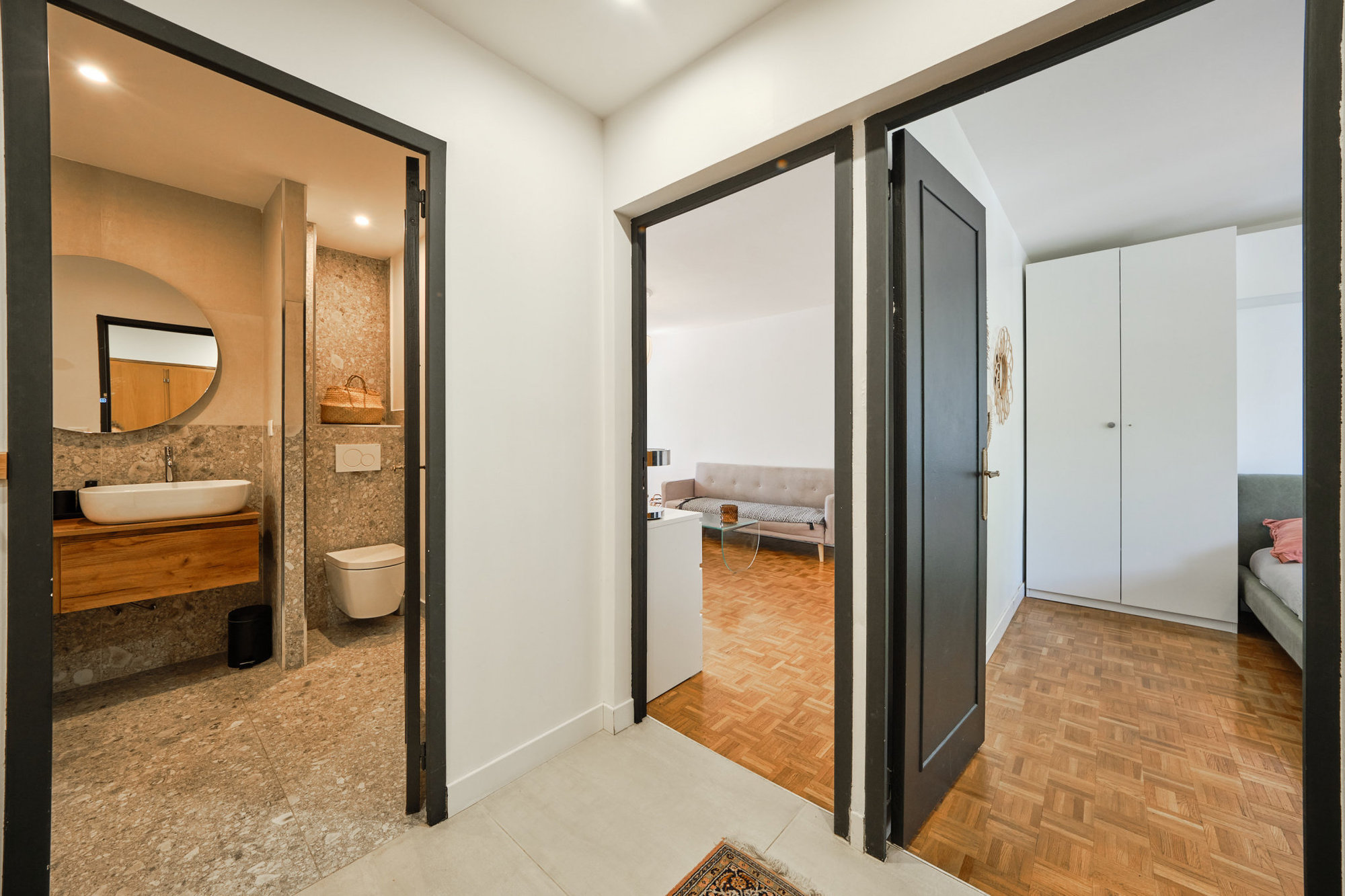 تقع ضمن منطقة سكنية هادئة، قريبة من المرافق والخدمات، وتتميز بسهولة الوصول إلى الحدود السويسرية، مما يجعلها خيارًا مثاليًا للعيش أو الاستثمار الدولي